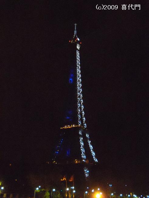 ライトアップされたエッフェル塔です